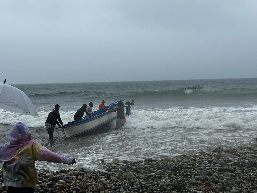 We clamored ashore at the resort where the medical brigade participants were staying. As for the missionaries, we had a 15 minute walk along the shore to the Finca. We adjusted our trash bags outfits and trekked on through the wind and the rain.