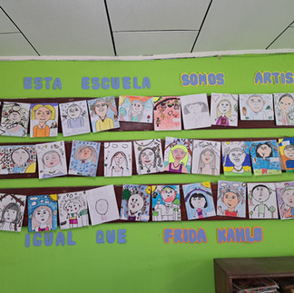 When translated to English, it starts with "In this class, we are artists, just like Frida Kahlo. And when I try my best, my art is never bad." It sounds way more cool in Spanish, I promise. The great thing about the song is that it led perfectly into our first project: self-portraits inspired by Frida Kahlo. The downside is that most of the kids think my name is Frida Kahlo.